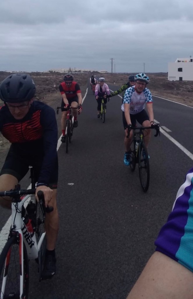 With a route already prepared, we set off together and stayed together for 50km. It was great to see the team beginning to work together and interesting to battle the very strong winds on our homeward bound leg of the journey. It was however so reassuring after my last training ride to feel on top of my game again today and to keep up with the group in fact, leading the group for a brief spell. John’s competitive gene is clearly rubbing off on me!