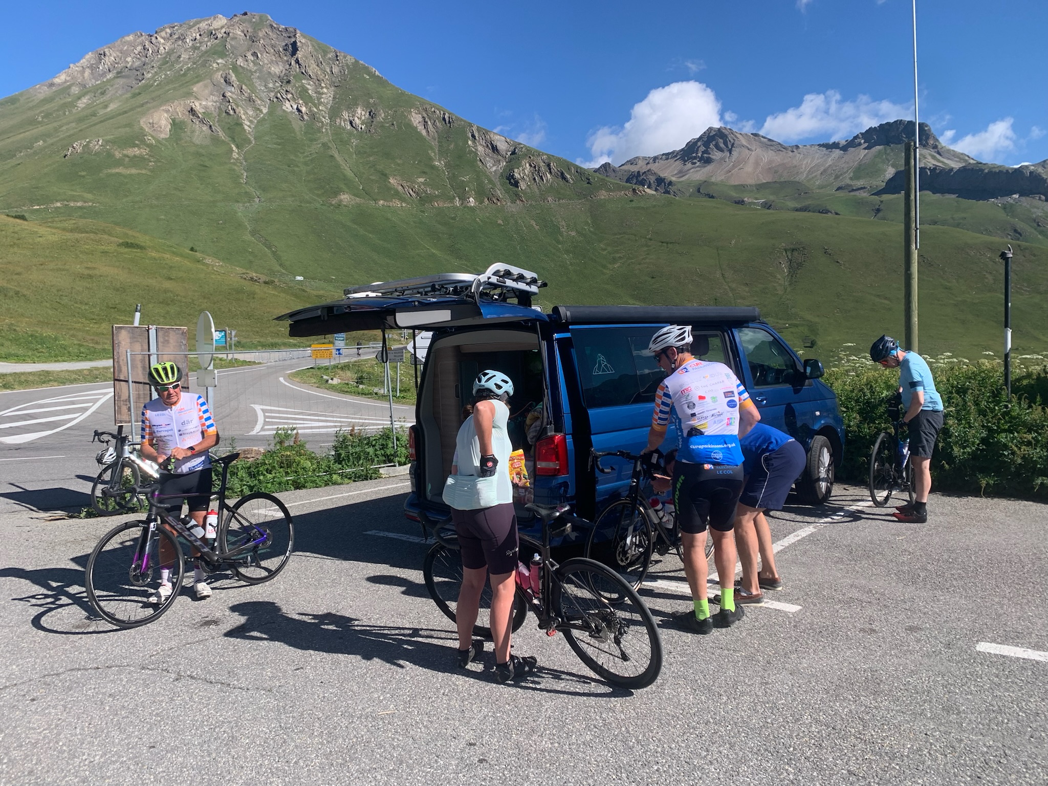 I was part of the support crew for a group of five cyclists as they took on The Raid Alpine. 770km long. Over 18,000m of climb. Geneva to Nice. I had never even heard of such a challenge, nor would I have thought it would be possible to do in 10 days on a bike! But our cyclists did. On the 30th June, a warm Thursday morning, Alison Anderson, Claire Lehman, John Anderson, John Wilkinson and Roland Valori set off.