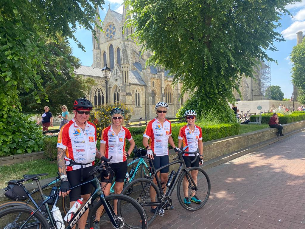 It took some persuasion but eventually everyone agreed to meet this morning at 5.30am for a 6am start. By 9am, we’d covered 30km and had a picnic breakfast. We were joined today by Julia, so our team was now five. Four cyclists and Julie, our cherished support crew of one. Despite the early start the roads were busy and didn’t make for particularly enjoyable cycling but getting a few miles under our belts before the temperature started to rise felt good. A stop in Chichester for lunch, where we ate at The Barn in Little London where we received the warmest welcome from owner Emma Schwarz and her team, the best lunch and lots of interest, donations and words of encouragement for our onward journey.