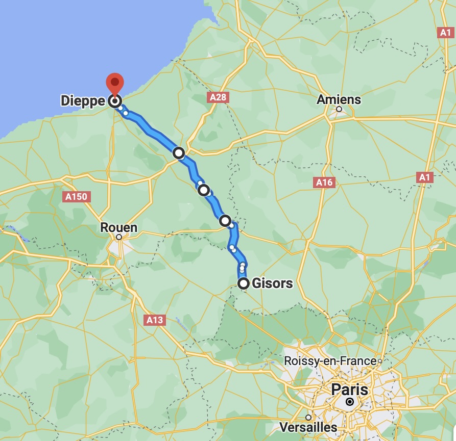 Our ride today started with a short but steep climb out of Dieppe before joining the Avenue Verte – a cycle path along a disused railway line – which we followed for some 25 miles, all the way to Forges-Les-Eaux. From here we cycled southeast across Normandy from village to village as far as Gisor.