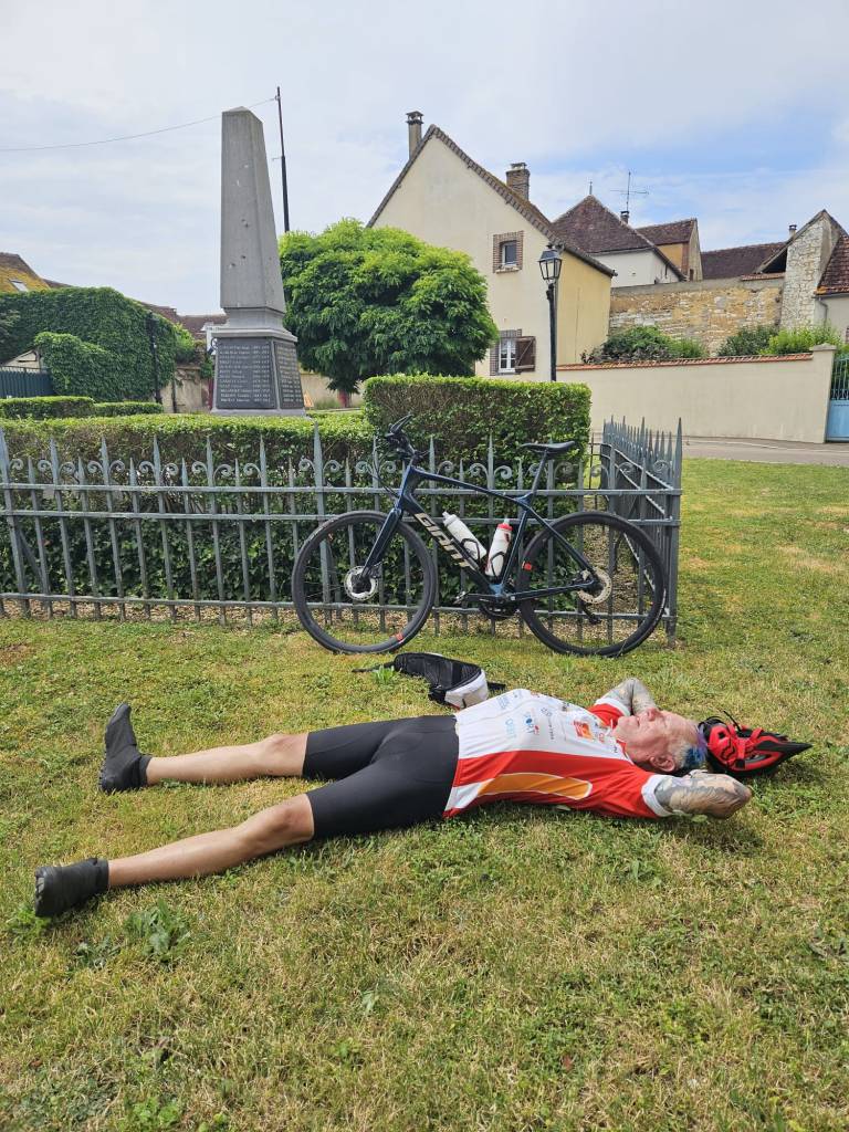 At the back, frustrated by my medication’s poor effect this morning, then lack of energy, I made slow progress, painfully slow at times. Making it to our next location, Auxerre, after nine hours of cycling, was a such a relief and was made possible by the support of John, Geoff, Declan and Steve, our team leader, all of whom patiently stayed with me when they could have finished the ride some significant time earlier.
