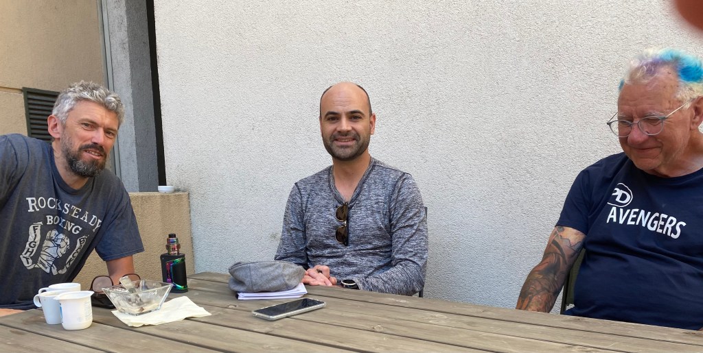The day was filled with some essential tasks – laundry, bike maintenance and lots of food seemed high on most peoples agendas. Interviews with a local newspaper journalist also took place. Contacting family and friends was also high on everyone’s agendas. Family members also made the long journey to Lyon with Gary’s wife and daughter joining us for the day and a visit for Denise and Jim from their daughter who made a detour to Lyon before flying onto Vancouver. A complete surprise for Denise that Jim had been helping to plan.