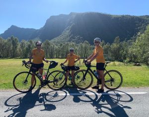 The bridge, busy and not in anyway lending itself to safe cycling, saw many of us walk our bikes over. Mission accomplished, first obstacle of the day overcome without trauma. The first 20km passed quickly and easily, a little hillier than our brief had suggested but manageable. The next 25km took us all by surprise. The hills seemed relentless, steep and significantly more than we had anticipated, culminating in our arrival at the home of one of our team members, Steiner and his wife, Lina. They had invited the whole team for lunch and what an amazing experience it was. With help from a few friends from their local Parkinson’s support group and some family members, they had cooked a wonderful feast for all of us. I could quite happily have stayed there all day but after an hour in this beautiful setting, we set off to cover the remaining 66km.