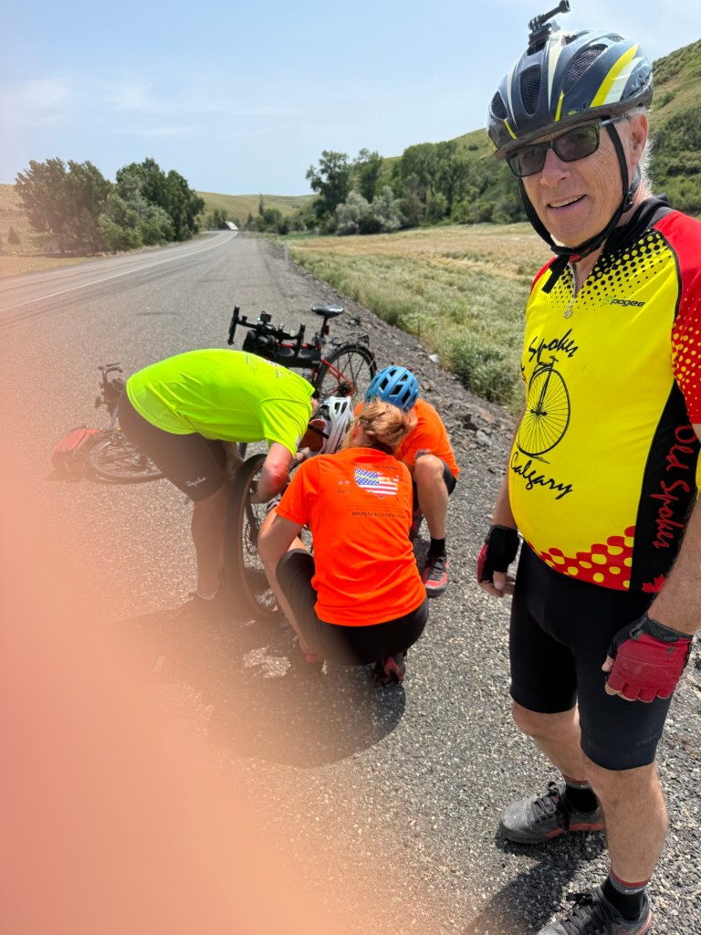 Starting well, this morning saw me cover my fastest 20km ever! We followed the I12 for most of the day. Busy at times but with a fair tail wind, today’s climbs didn’t seem too bad. Without doubt we are getting fitter. The scenery along the Snake River was lovely. We had covered the first 35 miles by midday when we met up with Denise and Jim who had travelled from Calgary to join us for a few days.