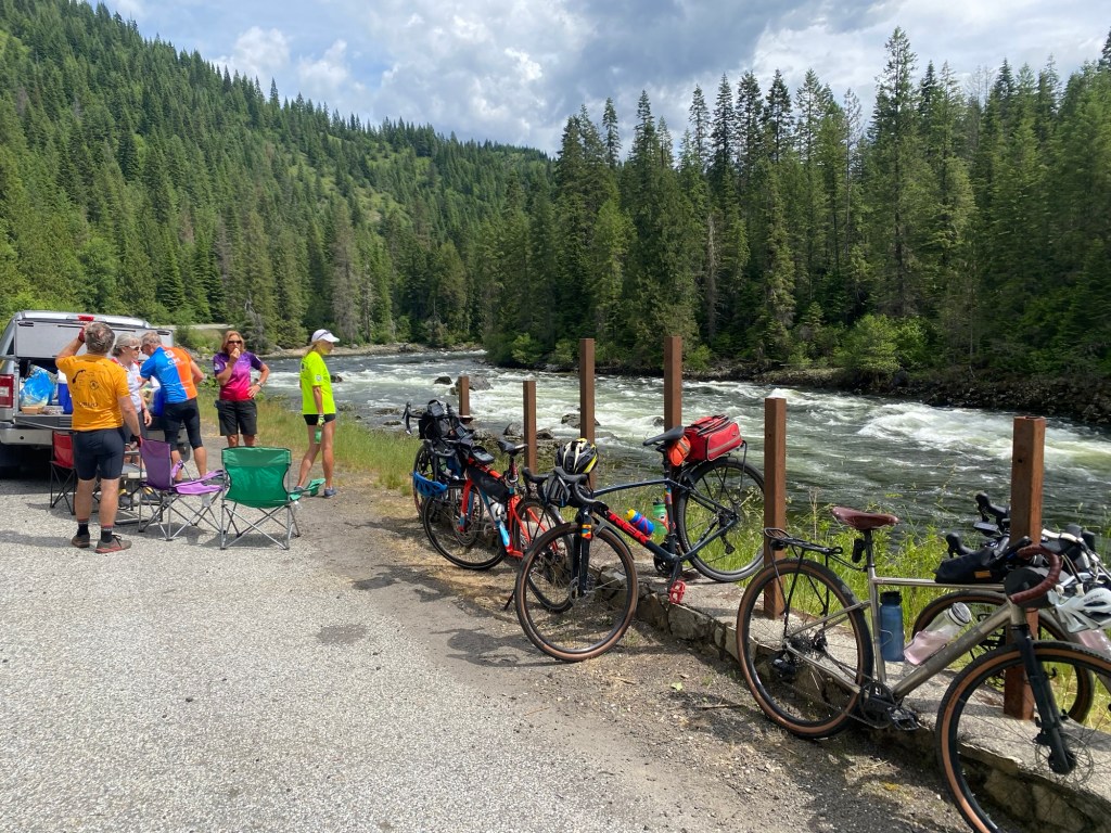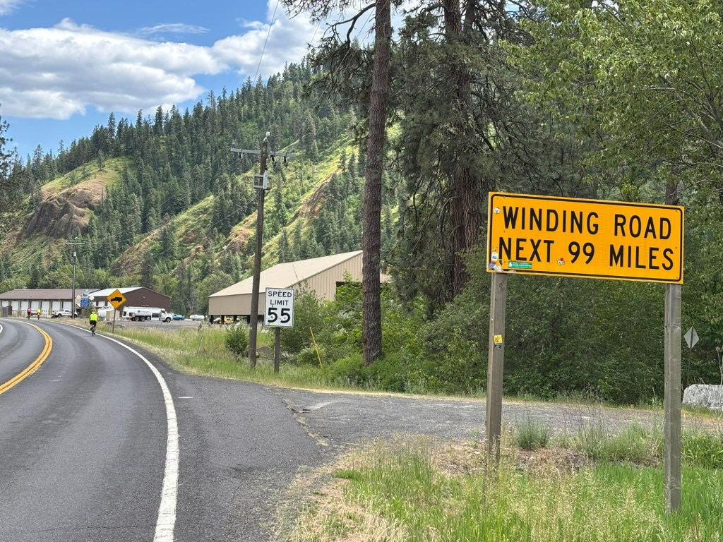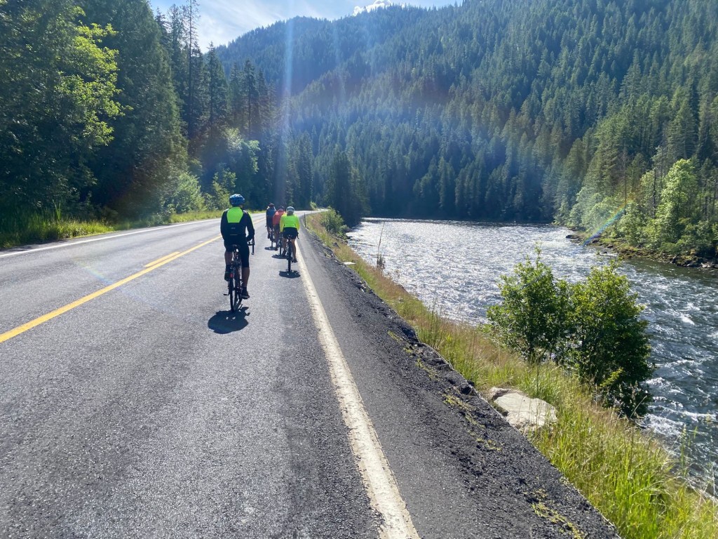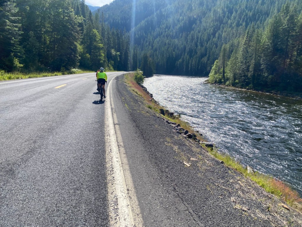 The brief for today couldn’t have been any simpler. Turn right out of our lodge, follow Highway 12 along the Lochsa river and keep pedalling for 65 miles along this long and winding road.
