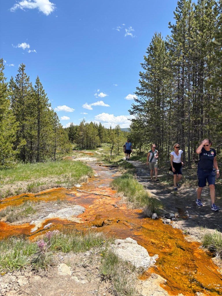 With eight of us currently staying and cycling together, it can take some time to make a decision that works for everyone. We have today to spend in Yellowstone with a hire car, rather than our bikes our transport. We want to hike today but where and for how long. Exploring many options, we found a walk taking in some waterfalls and geysers that was not too long, not too short but just about right at 8km.