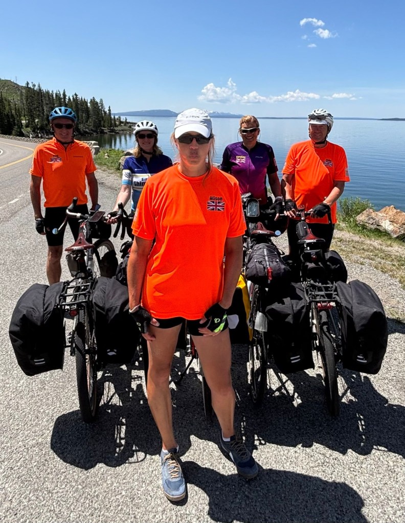 With an ‘easy’ 45 mile route, we weren’t feeling under any time pressure and stopped to enjoy more spectacular vistas. We were treated to a number of wildlife encounters which were wonderful to experience. First a young deer, a bear (no bear spray needed) and the enormous bison, at times, disconcertingly close to the road we were cycling on. Local enthusiast offered their telescope lenses trained on wolves and a variety of other animals in their spectacular environments and educated us about their habits and habitats.