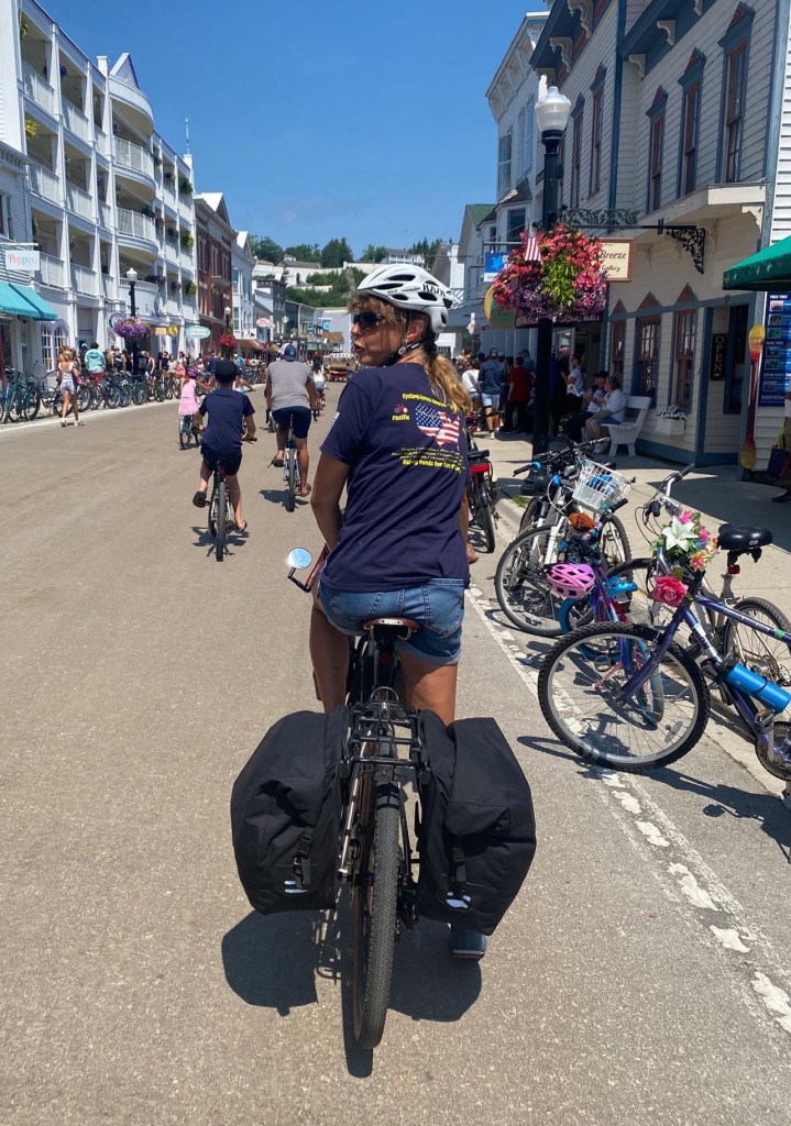 Mackinac Island was a complete antidote to the previous few days of cycling on the highway. The Island is traffic free. Once away from the bustling Main Street adjacent to the ferry landings, the roads were quiet and I could hear the water lapping against the pebbles on the narrow beaches.