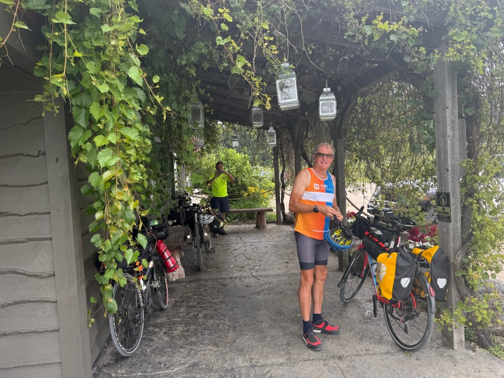 Arriving at our destination by early evening, it was a quick turn around. A friend of a friend has a summer home very close to where we are staying and invited us for supper. We had a wonderful evening. Never before have I taken my dirty washing to someone’s home when going for supper but needs must. We have huge appetites from all the cycling we are doing and Stephanie knew how fruit and vegetable depleted we were. Supper resolved all these issues and was simply the best meal we have had in the last few weeks. The company was lovely and it was such a gorgeous evening. Thank you so much Stephanie and Greg!