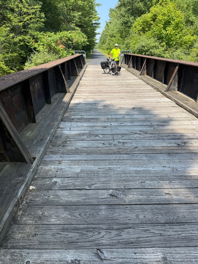 The bike trail, a continuation from yesterday, lasted another 40 miles and was lovely. We met a few other cyclists along the way and exchanged our respective cycling stories. Thanks to Art and Crystal who we met for a second time at lunch and who kindly bought us ice creams while we exchanged a few life stories. Lovely company and lovely ice cream!