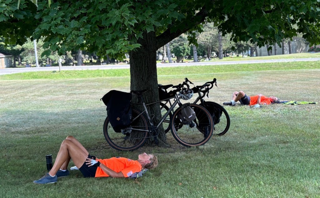 We took refuge from the sun at one point, under the trees on the front lawn of a church. We were warmly welcomed in to use the facilities and top up with icy cold water.