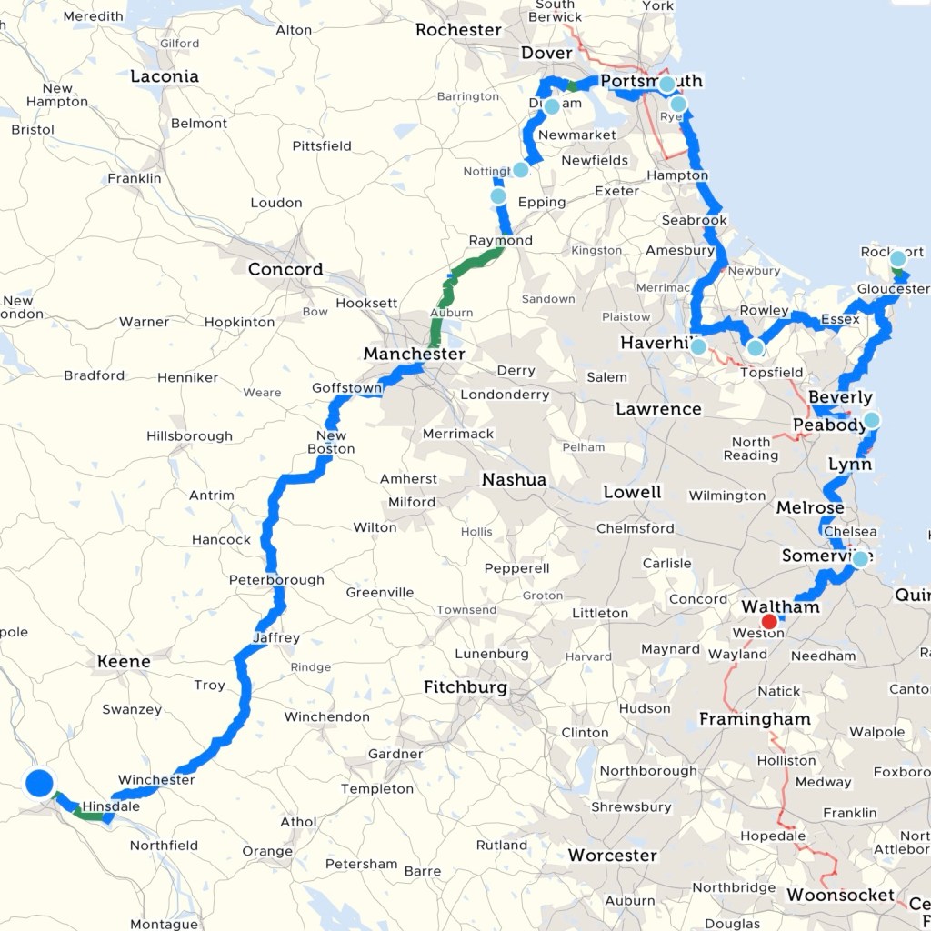 We enjoyed chatting with Scott and Kathleen while we sat and rested. A few short miles later we reached Brattleboro, our destination for the day bringing us closer still to the Atlantic Ocean.