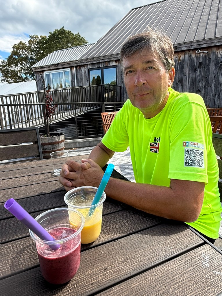 Wow Alison – fantastic reading day 100 driving across the Heads of the Valleys coming home from Llangrannog! Despite the hills it sounds a great day, laced with the anticipation of the end and coming home. Would you both like to come round for a relaxing coffee or drink when you’re settled back home? Looking forward to hearing about the final miles! 🚲