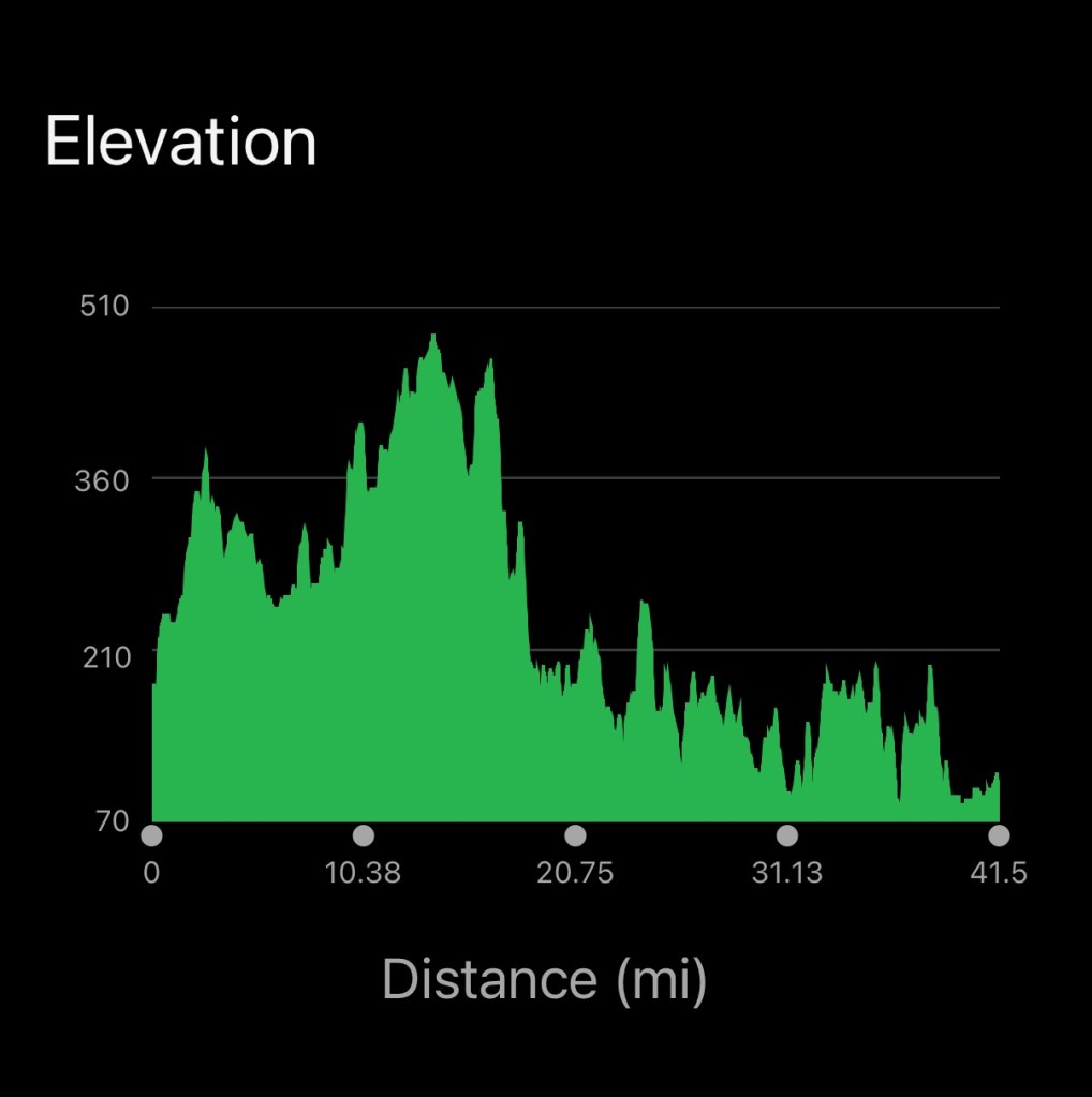 Indeed the route started out flat – for the first mile and then from that moment on there were many hills of all shapes and sizes that got in the way of my flat route.